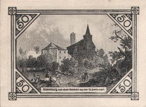 mit Motiv Burgruine, 50 Pfg. von 1921. |
