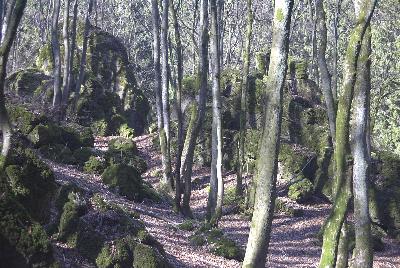 Buchenwaldes in einem bizarr unebenen und unübersichtlichen Gelände. Für
