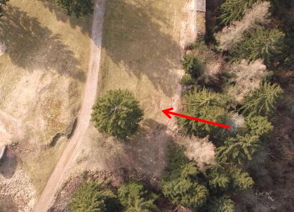 | Schon vor hundert Jahren wurde darüber spekuliert, wie die Burg einst mit Wasser versorgt worden sein soll. Der ehemalige Kreisaufseher Seifen hatte bereits zu diesem Thema recherchiert und der überlieferten These - im mittleren runden Turm habe sich ein Brunnen befunden - widersprochen; eine Wasserförderung aus ca. 100 Metern Tiefe war vor mehr als siebenhundert Jahren technisch unmöglich. 1895 wurde im Bereich Hauenborn die Wasserzufuhr der Burg Schönecken bei Drainagearbeiten entdeckt: eine Rohrleitung aus Baustämmen in ca. 1,50 m Tiefe. In den Jahren 1938/39 wurden weitere Rohrleitungen entdeckt, die zweifellos als Burgwasserleitung zu bewerten sind. Wo aber auf der Burg das Wasser ankam konnte nicht geklärt werden. Die Luftaufnahmen von Dr. Credner aus dem Jahre 2009 zeigen neue, bisher unbekannte Details. | |