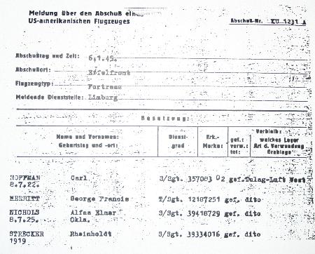 Erlebnisberichtes des Bordheckschützen Feldwebel Marion C. Hoffman, der heute 87 jährig